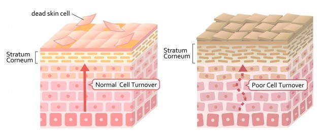 とくに乾燥は角質層のうるおいを奪い、肌表面のごわつきを招いてしまいます。輝きの失われたカサカサの肌表面では光をキレイに反射できず、また未熟な角質細胞が厚く積もることで肌はどんよりとくすんでしまうのです。
