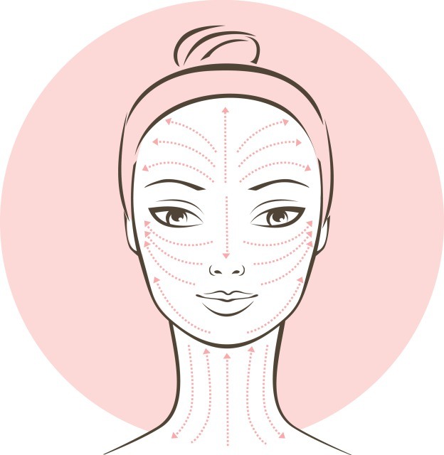 気になる部分へ多めに塗布し、顔全体に広げるときは肌を下に引き下げず、上に持ち上げるように塗り広げます。リンパ節が密集しているフェイスラインや首はとくに念入りにほぐすのがコツです。