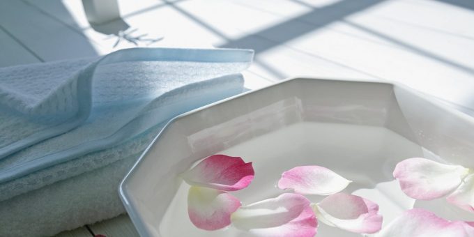 夜のお手入れはたっぷりと水分補給を! コットンにつけて3分間パック。途中で乾いてきたら、もう一度上からスプレーして。使うたびにほのかに甘いローズの香りに包まれる天然フラワーウォーターはリラックス効果バツグン。最後は、顔全体を優しくハンドプレス。水分をしっかりと入れ込むことを忘れずに。