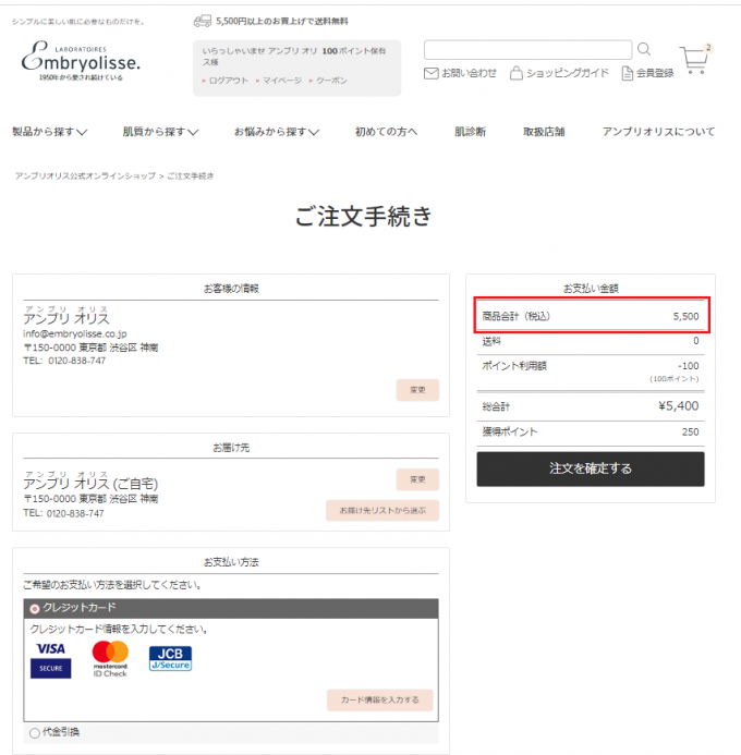 ※キャンペーン対象金額につきましては下記ご注文手続きの赤枠部分「商品合計(税込)の金額が5,500円以上」であることをご確認ください。
