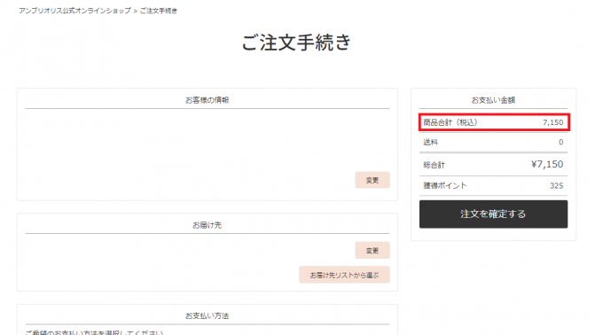 ※キャンペーン対象金額につきましては下記ご注文手続きの赤枠部分「商品合計(税込)の金額が7,000円以上」であることをご確認ください。