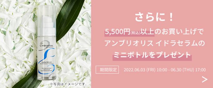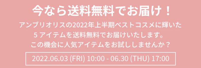 お知らせ 2022年上半期アンブリオリスのベストコスメ 2022/06/03 キャンペーン LINE tweet facebook TOP 5 が6月30日 17:00まで送料無料! 2022年上半期 アンブリオリスのベストコスメ 1位 ロングセラーの 保湿・下地クリーム アンブリオリス モイスチャークリーム / 75mL \3,245(税込) 2位 保湿クリーム・ 日焼け止めが1本で完了 アンブリオリス プロテクションクリーム / 40mL / SPF20 / PA+++ \3,080(税込) 3位 うるおい成分を 豊富に含んだ 保湿クリーム フィラデルム モイスチャークリーム / 75mL \3,630(税込) 4位 使うたび優しい フローラルの香りに 包まれるノンアルコール 化粧水 アンブリオリス ロザメリスローション / 200mL \2,530(税込) 5位 ふき取るだけで素肌を やさしく洗い上げる うるおいクレンジング ローション アンブリオリス クレンジングミセルローション / 250mL \3,080(税込)